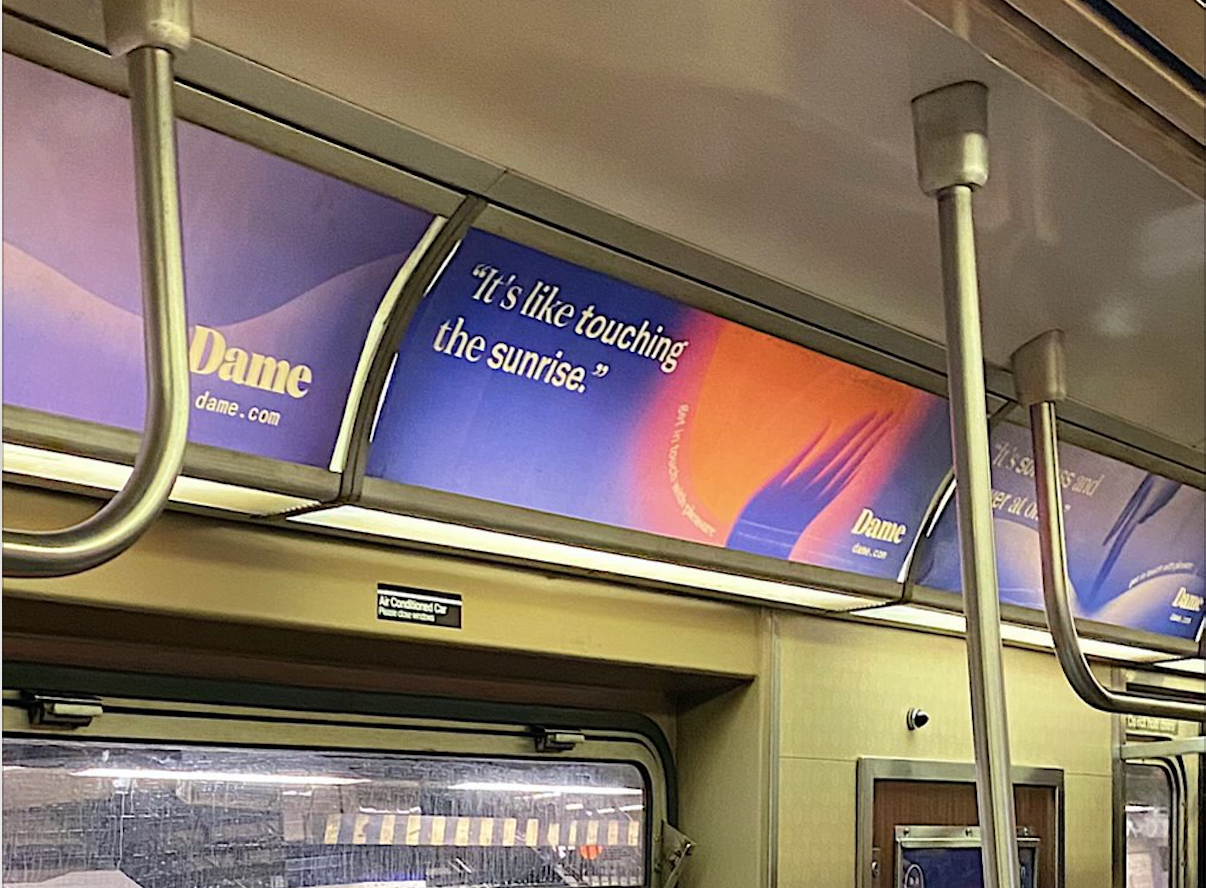 In 2021, this same brand ethos shaped Dame’s historic settlement with the New York MTA, after the agency had blocked its ads while allowing erectile dysfunction campaigns. The resulting “Get In Touch With Yourself” campaign marked Dame as the first female-founded pleasure product company approved to advertise citywide on the NYC subway system, further cementing its role in shaping inclusive conversations around sexual wellness.